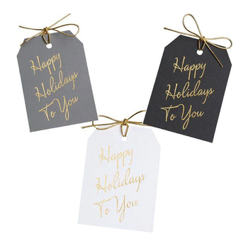 Etiquetas colgantes de papel reciclado al por mayor para ropa y zapatos, etiquetas colgantes de diseño personalizado, características impresas para uso en bolsos